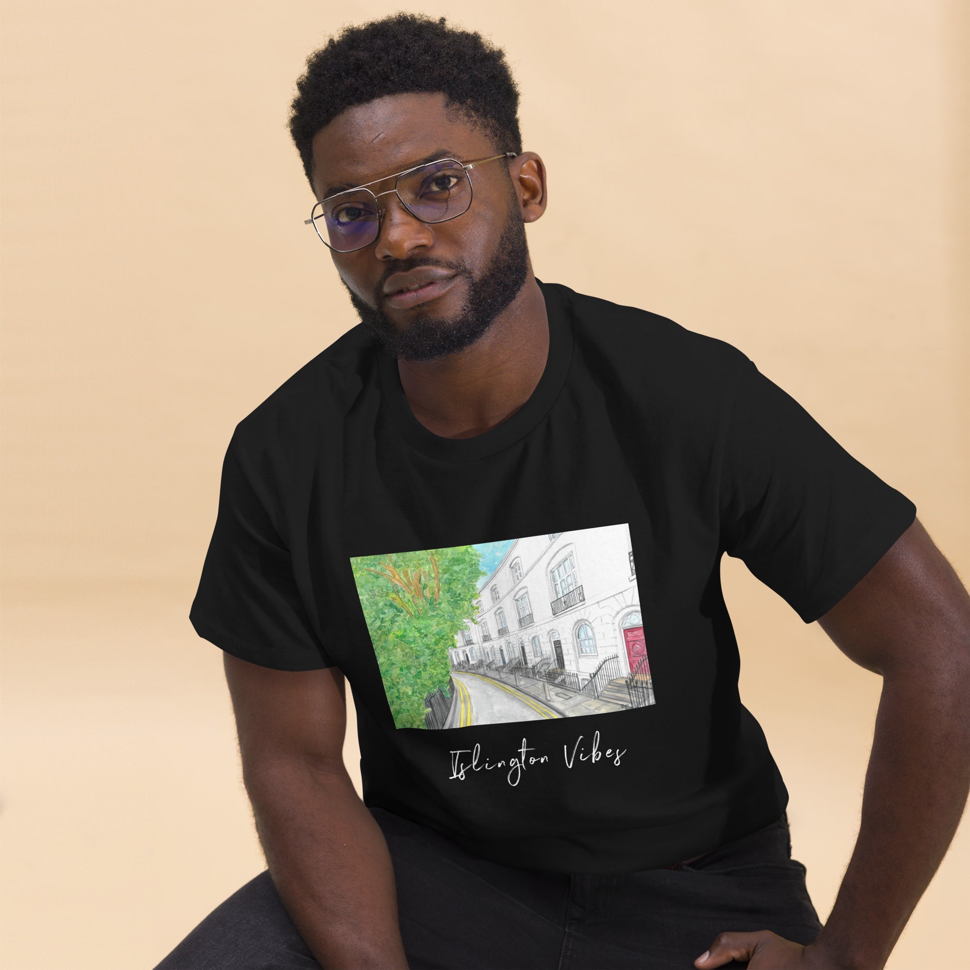 Bring a piece of Islington’s Georgian heritage into your wardrobe with this Islington Vibes cotton tee, showcasing a watercolour artwork print by Ruth Beck of Annette Crescent, just off Essex Road. Built in the mid-19th century, the crescent’s elegant architecture and sweeping curve capture the charm of Islington’s residential streets — a quiet contrast to the bustle of nearby Upper Street. Soft yet structured, this tee is designed for everyday wear, whether layered with streetwear or styled solo for a timeless North London look.