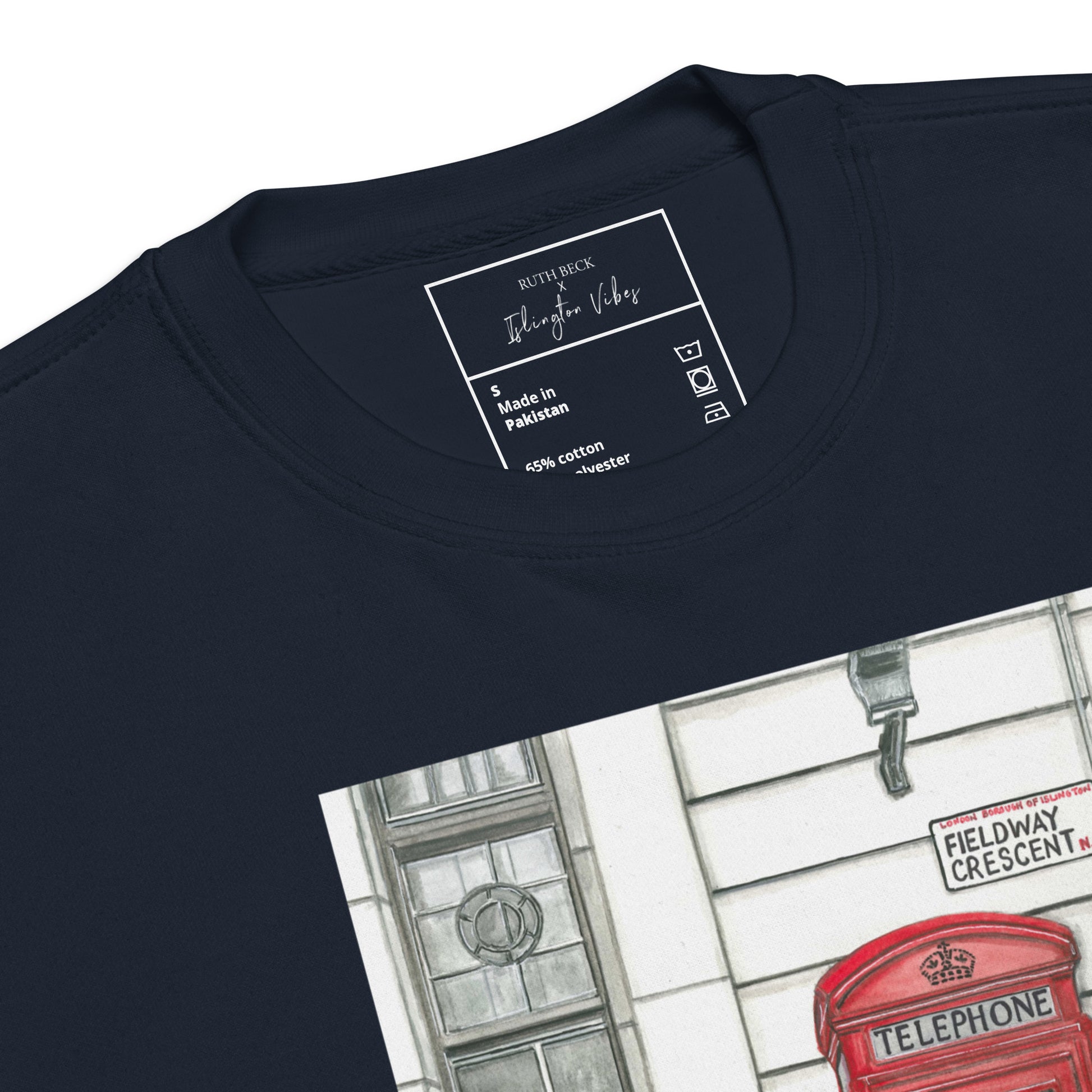 Wrap yourself in a piece of Islington calm. This Islington Vibes sweatshirt features Ruth Beck’s watercolour artwork of Fieldway Crescent, a quiet, tree-lined street just off Highbury Fields known for its elegant architecture and neighbourhood charm. A perfect snapshot of everyday North London life, this piece captures the slower, softer side of Islington. Crafted from a cosy fleece-lined heavyweight cotton blend, this sweatshirt delivers warmth, comfort, and timeless style — made for morning strolls, Sunday coffees, and everything in between.
